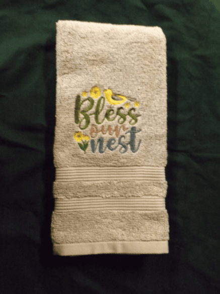 Bless Our Nest Embroidered Bathroom Hand Towel that can be used for decorative purposes, or delicately for daily usage.