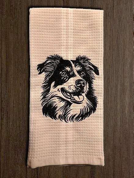 Australian Shepherd Embroidered Kitchen Towel that can be used for decorative purposes, or delicately for daily usage.